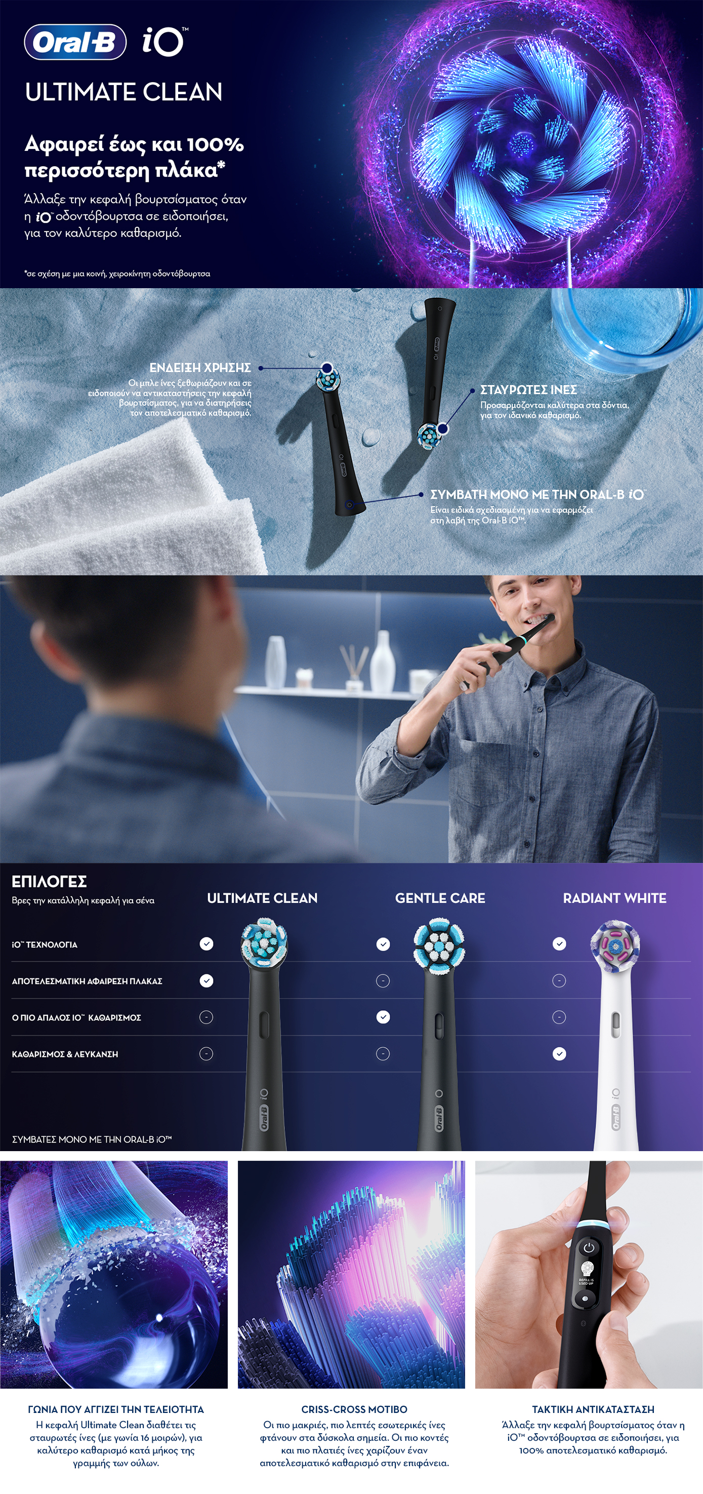 •Οι κεφαλές βουρτσίσματος Oral-B iO είναι ειδικά σχεδιασμένες για να ταιριάζουν μόνο με τις ηλεκτρικές οδοντόβουρτσες Oral-B iO