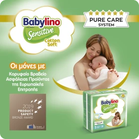 Οι βρεφικές πάνες Babylino Sensitive Cotton Soft, είναι σχεδιασμένες με βάση το Σύστημα Αγνής Φροντίδας Pure Care System, που αποτυπώνει όλο το Σύστημα ελέγχων, πιστοποιήσεων και αυστηρών διαδικασιών διασφάλισης ποιότητας πίσω από την παραγωγή τους.