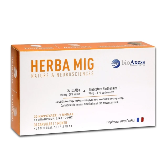BioAxess Herba Mig Συμπλήρωμα Διατροφής για την Καλή Λειτουργία του Νευρικού Συστήματος & τις Ημικρανίες 30 κάψουλες