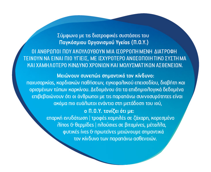 Eάν εστιάσουμε στη Μεσογειακή διατροφή που είναι το κυρίαρχο πρότυπο ισορροπημένης διατροφής στην Ελλάδα, παρατηρούμε πως τα δημητριακά και τα σιτηρά βρίσκονται στη βάση της και προτείνονται για καθημερινή κατανάλωση. Επιπρόσθετα, η βρώμη, όπως θα δούμε στη συνέχεια,φαίνεται να είναι μία συνδυαστική πηγή των παραπάνω ευεργετικών χαρακτηριστικών για την πρόληψη και ενίσχυση του ανοσοποιητικού μας κατά την πανδημία.