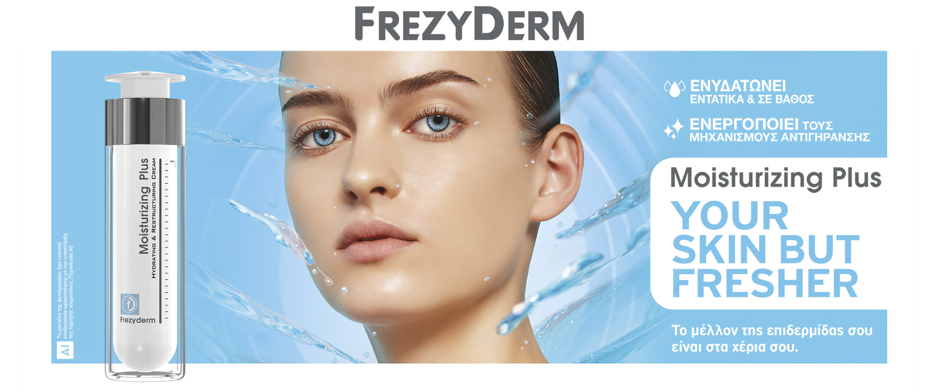 Νερό. Το Α και το Ω για την ελαστικότητα, την προστασία, τη λάμψη και τη ζωντάνια του δέρματος.Όμως η υδατική «δεξαμενή» του δέρματος συχνά μειώνεται λόγω διαφόρων παραγόντων.Η ηλικία, το φύλο και η γενικότερη κατάσταση της υγείας είναι ενδογενείς παράγοντες που μπορούν να επηρεάσουν τα ποσοστά ενυδάτωσης τους δέρματος ενώ στους εξωτερικούς παράγοντες συγκαταλέγονται η έκθεση στον ήλιο, οι ακραίες θερμοκρασίες και η απότομη μεταβολή τους, το περιβάλλον, ο τρόπος ζωής κ.λπ. Μία επιδερμίδα που στερείται των αναγκαίων ποσοστών υγρασίας παρουσιάζει σημάδια ξηρότητας και αφυδάτωσης. Είναι ένα δέρμα τραχύ, που «σκάει» εύκολα και λόγω της απώλειας ελαστικότητας είναι επιρρεπές στο ένα εμφανίσει πρώιμες λεπτές ρυτίδες.Η ενυδατική φροντίδα της FREZYDERM με κρέμες προσώπου - βασισμένες σε πρωτοποριακές τεχνολογίες και εμπλουτισμένες με καινοτόμες συνθέσεις- είναι ειδικά σχεδιασμένη να καλύπτει πολλαπλά τις ανάγκες ενυδάτωσης και επανόρθωσης κάθε δέρματος.Στη σειρά θα βρείτε ενυδατικές κρέμες προσώπου και ορούς για κάθε τύπο δέρματος (κανονικό, ξηρό, λιπαρό, μεικτό) και κάθε ηλικία που θωρακίζουν αποτελεσματικά τη φυσική υγρασία του δέρματος και προσφέρουν αποτελεσματική ενυδάτωση προσώπου και λαιμού, σφριγηλότητα και ζωντάνια.