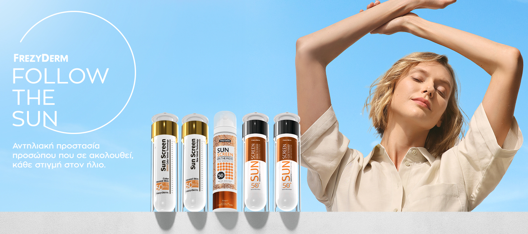 Στην ολοκληρωμένη σειρά αντηλιακών για πρόσωπο και σώμα της FRΕΖΥDERM θα βρείτε πρωτοποριακές συνθέσεις για ενήλικες, παιδιά και βρέφη, ειδικά σχεδιασμένες για τις ανάγκες της επιδερμίδας, κάθε ηλικίας που ενσωματώνουν μοναδικές καινοτομίες και προσφέρουν πέρα από αποτελεσματική ηλιοπροστασία, μοναδική καλλυντική ευχαρίστηση.