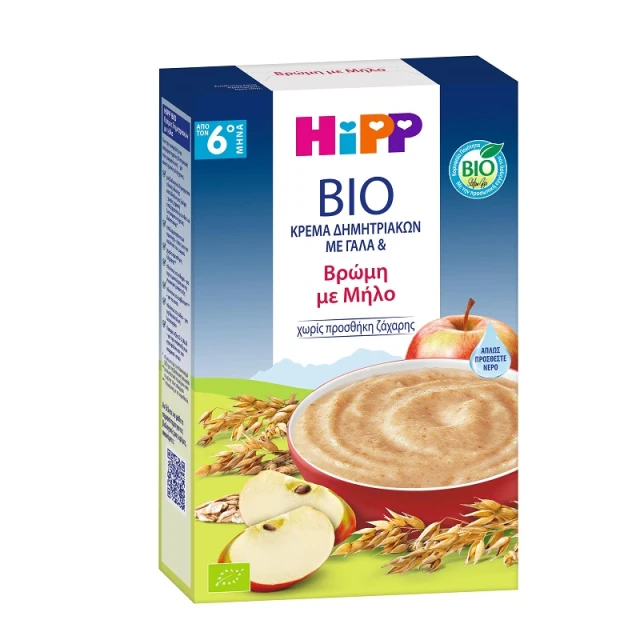 · Με θρεπτικά δημητριακά ολικής άλεσης βιολογικής καλλιέργειας, μήλο και μπανάνα