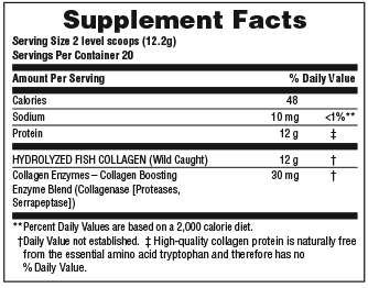 Μεγιστοποιημένη απορρόφηση: Υψηλής πηγής υδρολυμένο κολλαγόνο ψαριών εμπλουτισμένο με ένζυμα για μεγιστοποίηση της απορρόφησης.