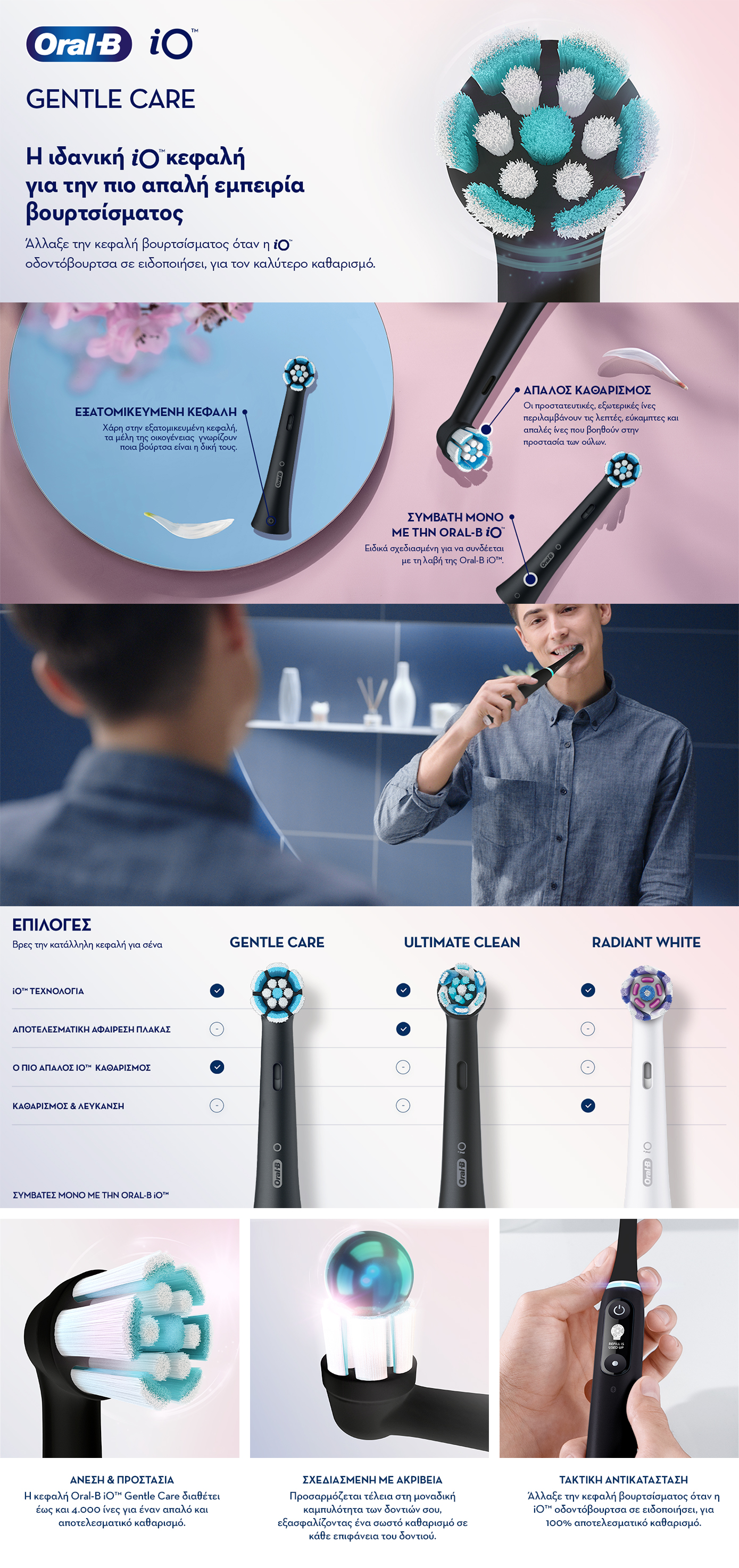 •Οι κεφαλές βουρτσίσματος Oral-B iO είναι ειδικά σχεδιασμένες για να ταιριάζουν μόνο με τις ηλεκτρικές οδοντόβουρτσες Oral-B iO