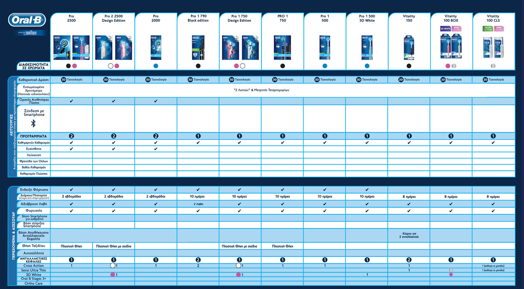 - ΒΑΘΥΣ ΚΑΘΑΡΙΣΜΟΣ με ΤΕΧΝΟΛΟΓΙΑ 3D, ταλαντεύεται, περιστρέφεται και πάλλεται, αφαιρώντας έως και 100% περισσότερη πλάκα σε σχέση με μια χειροκίνητη οδοντόβουρτσα