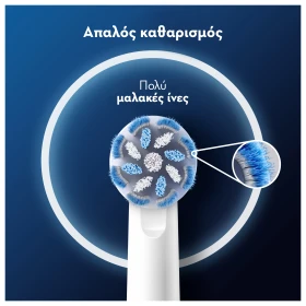 Οι γνήσιες κεφαλές βουρτσίσματος Oral-B έχουν σχεδιαστεί με νέες ίνες σχήματος Χ που καθαρίζουν περιοχές που οι στρογγυλές ίνες δεν μπορούν να φτάσουν. Η ένδειξη χρήσης της κεφαλής βουρτσίσματος αλλάζει τις ίνες από πράσινο σε κίτρινο χρώμα, υπενθυμίζοντας πότε να τις αλλάξετε για να διατηρήσετε 100% αποτελεσματικότητα καθαρισμού.