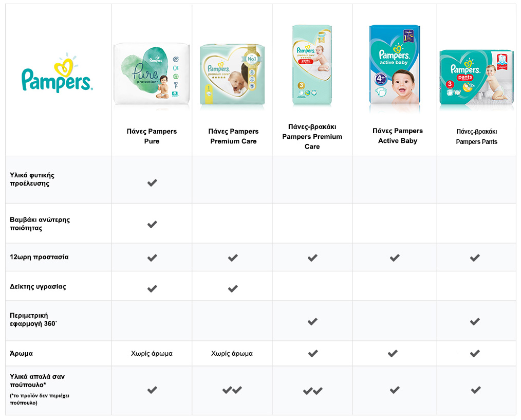 Καθώς η ασφάλεια του μωρού σας είναι η πρώτη προτεραιότητα της Pampers, τα Pampers Premium Care σέβονται το δερματάκι του μωρού σας: είναι δερματολογικά ελεγμένα και δεν περιέχουν καμία από τις 26 αλλεργιογόνες αρωματικές ουσίες (όπως αυτές ορίζονται στον Ευρωπαϊκό Κανονισμό). Αν θέλετε να μάθετε περισσότερα για τα συστατικά που χρησιμοποιούν τα Pampers, επισκεφθείτε τη διεύθυνση pampers.gr.