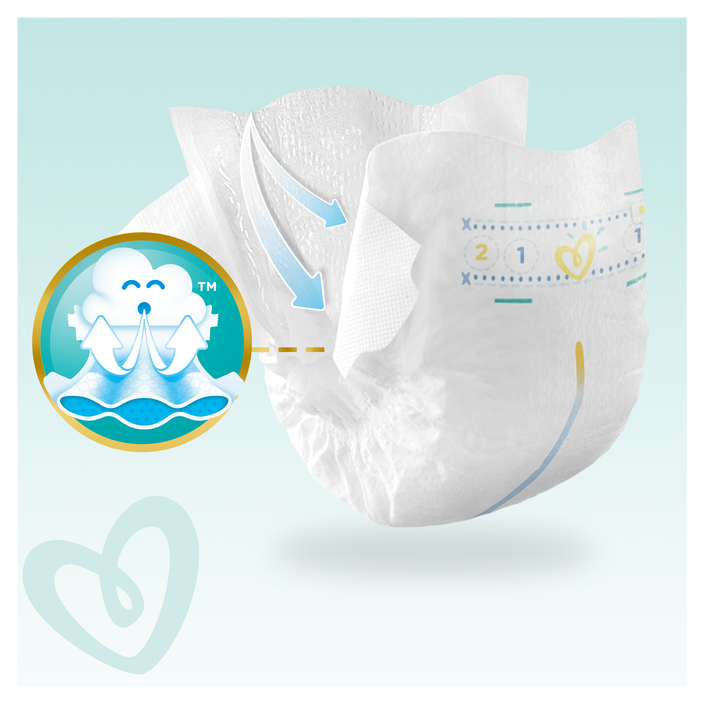 Γι’ αυτόν τον λόγο τα Pampers Premium Care, η νούμερο 1 επιλογή των μαιευτικών κλινικών, είναι πιο απαλά και πιο στεγνά από ποτέ. Η μοναδική τους εσωτερική και εξαιρετικά απαλή κάλυμμα αναπνέει και προσφέρει άνεση, ενώ ταυτόχρονα συσσωρεύει την υγρασία και τα κακάκια και τα κρατά μακριά από το δερματάκι του μωρού σας. Τα απαλότερα ελαστικά πλαϊνά και τα διπλά προστατευτικά στα ποδαράκια προσαρμόζονται στο σώμα του μωρού σας, για απόλυτη άνεση στο δέρμα και βελτιωμένη προστασία από τις διαρροές. Επιπλέον, ο πανίσχυρος πυρήνας τους απορροφά τα υγρά αμέσως, για να διατηρεί στεγνό το ευαίσθητο δερματάκι του μωρού σας και να το προστατεύει για έως και 12 ώρες.